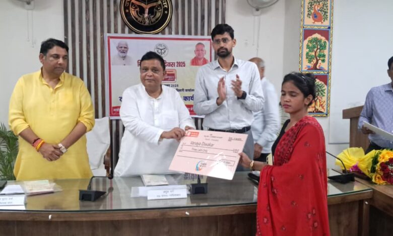 कार्यक्रम के दौरान माननीय सांसद गाजियाबाद तथा माननीय विधायक सदर के कर कमलों से विश्वकर्मा श्रम सम्मान योजना के 55 लाभार्थियों को टूल किट एवं प्रमाण पत्र वितरण किया गया तथा मुख्यमंत्री युवा उद्यमी विकास अभियान योजना के 05 लाभार्थियों श्री अमित कुमार, सीमा देवी, वान्या दिवाकर, मोहित कुमार, रानी दास को ऋण योजना के चेक वितरित किए गए।